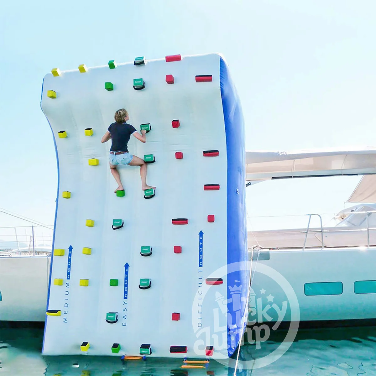 Perfect for parties, corporate events, or private adventures, this floating climbing wall offers a safe and engaging experience for all ages.