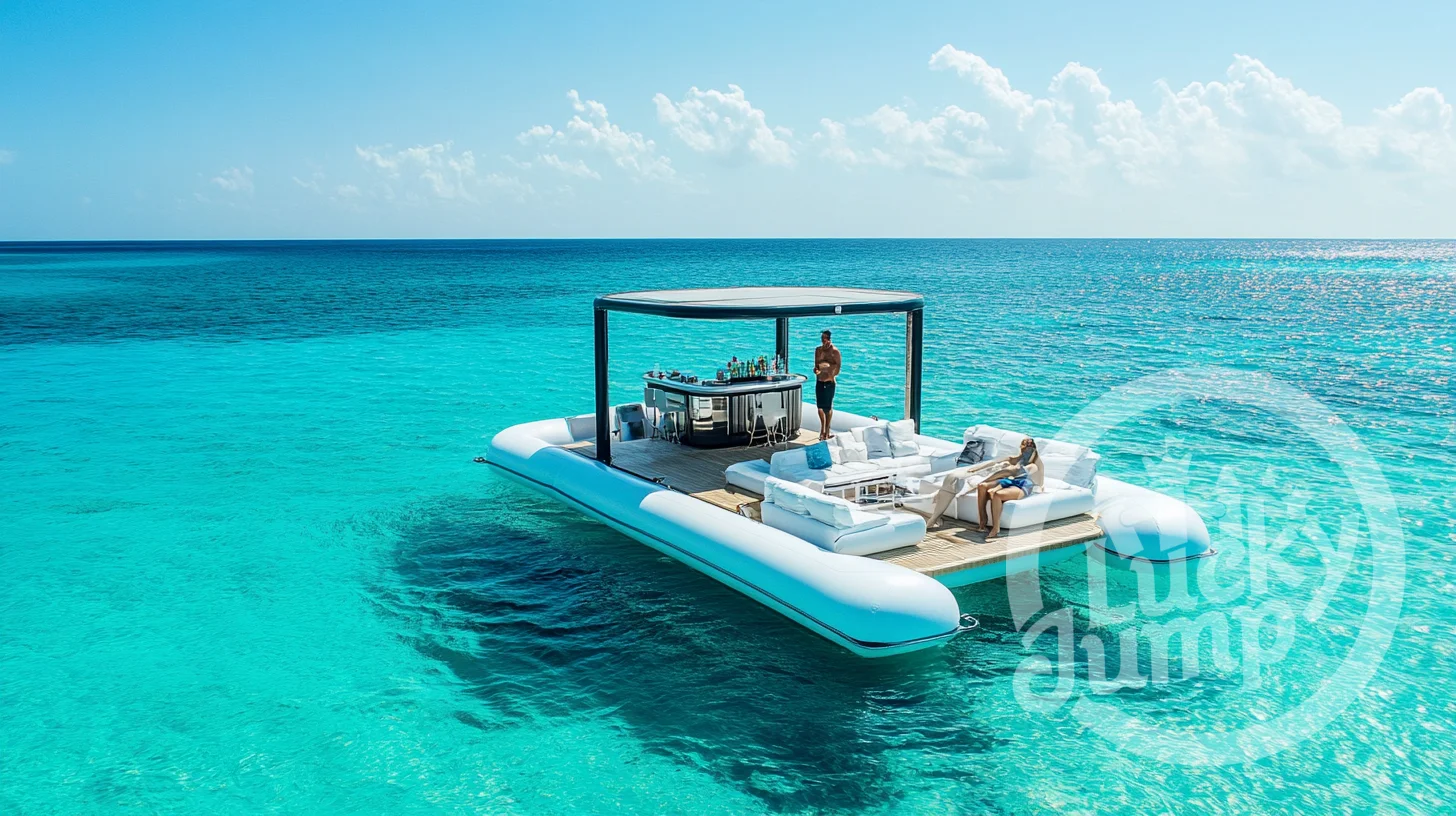 Luxury Awaits: Inflatable Yacht Floating in Crystal-Clear Waters